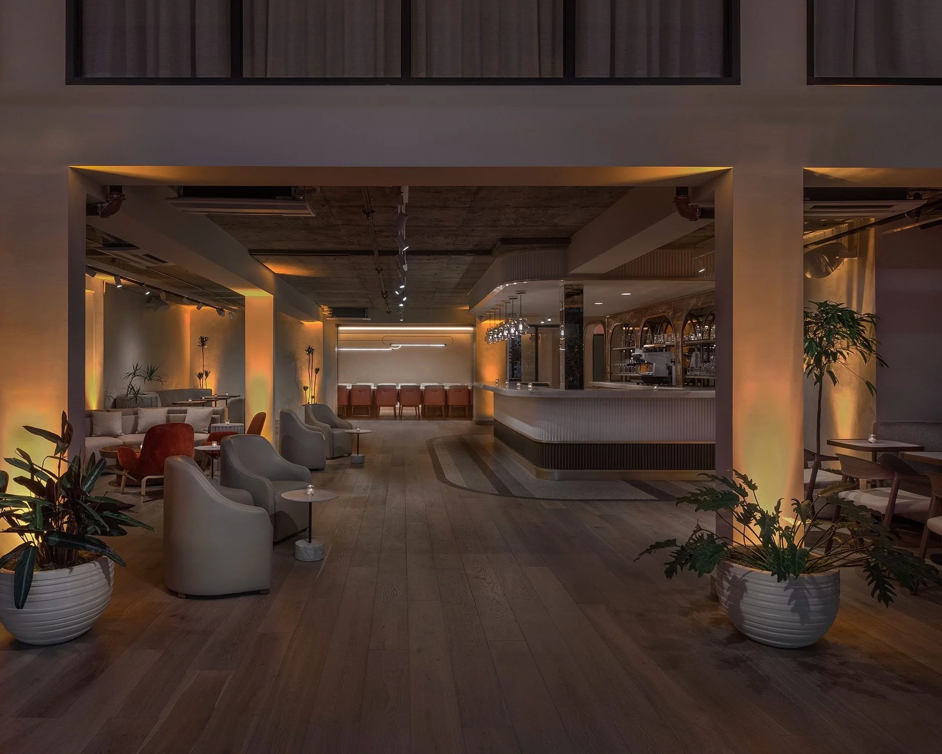 A minimal but detail-oriented luxury that also embraces the structure’s forms seen throughout the space. Authentic materials and industrial touches will embrace the buildings raw inheritance and enable versatility for any event programming. It includes an 11,900 sf event space, a 80-person seated cinema, boardroom, lounge and coffee bar, commercial kitchen, outdoor space and rooftop parking lot.
